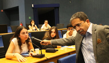 In one of the most emotionally resonant parts of the visit, students watched the powerful VR documentary Dreaming of Lebanon, produced by UNSCOL in collaboration with the UN Department of Political and Peacebuilding Affairs (UNDPPA); a deeply human exploration of people's aspirations through human stories in a country scarred by subsequent crises. The immersive experience left many speechless.