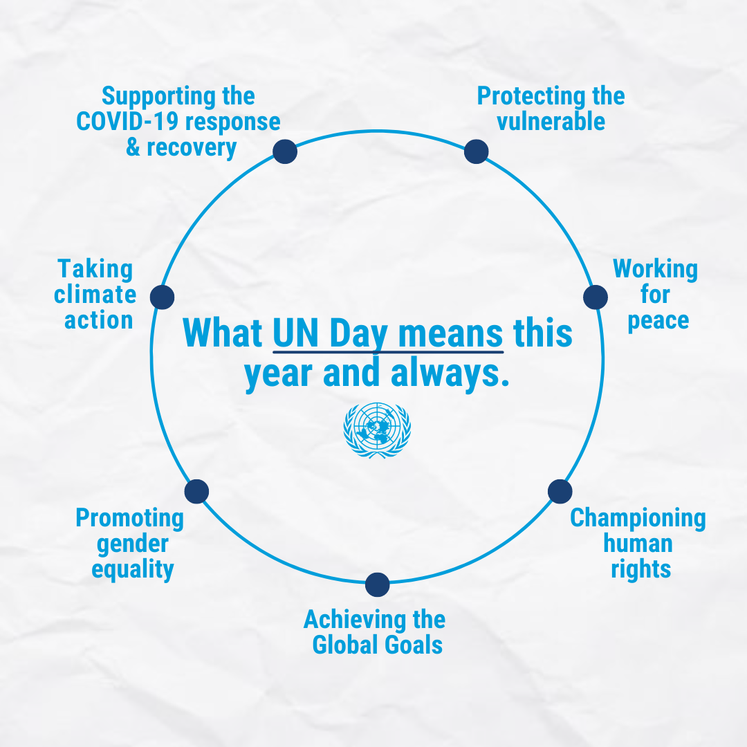 كما أكدت المنسقة الخاصة على أن الطريقة المثلى للاحتفاء بيوم الأمم المتحدة في مثل هذه الأوقات العصيبة هي عبر ترجمة المثل العليا المنصوص عليها في الميثاق إلى أفعال. وفي هذا الصدد أعادت التذكير بالنداء الأخير الذي أطلقه الأمين العام أنطونيو غوتيريش لـ "اتخاذ إجراءات لبناء مستقبل يليق بأحلام أطفال المنطقة وعالمنا".
