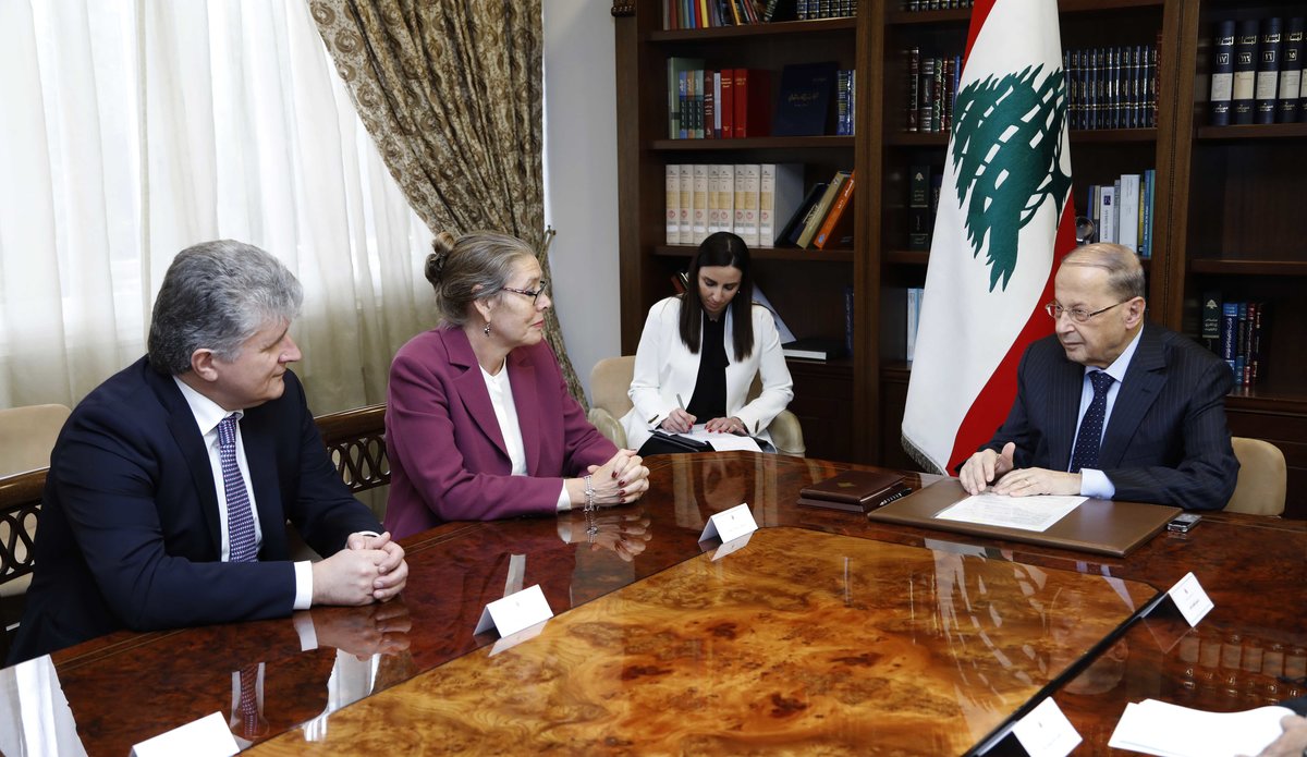 ASG for Political Affairs Miroslav Jenca and Acting UN Special Coordinator for Lebanon Pernille Kardel meet President Michel Aoun (Photo-DalatiNohra)