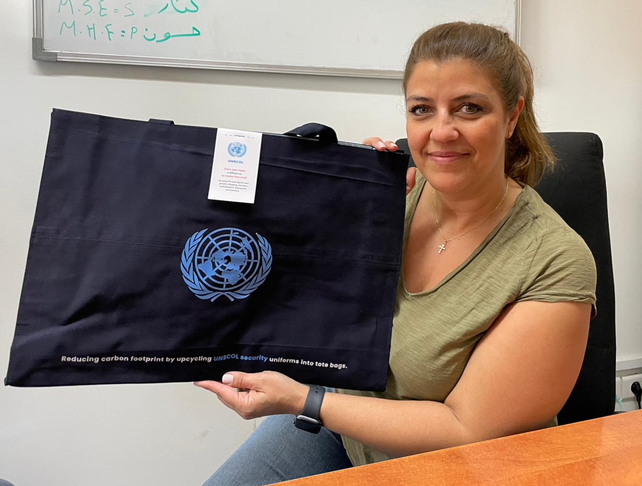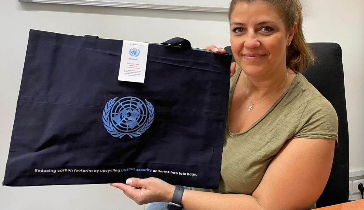 UNSCOL staff turn discarded uniforms into sustainable tote bags