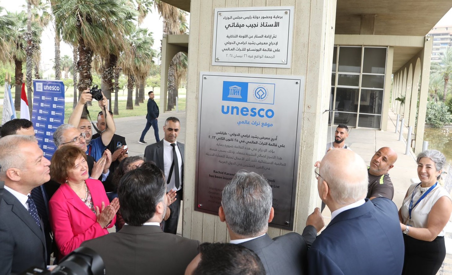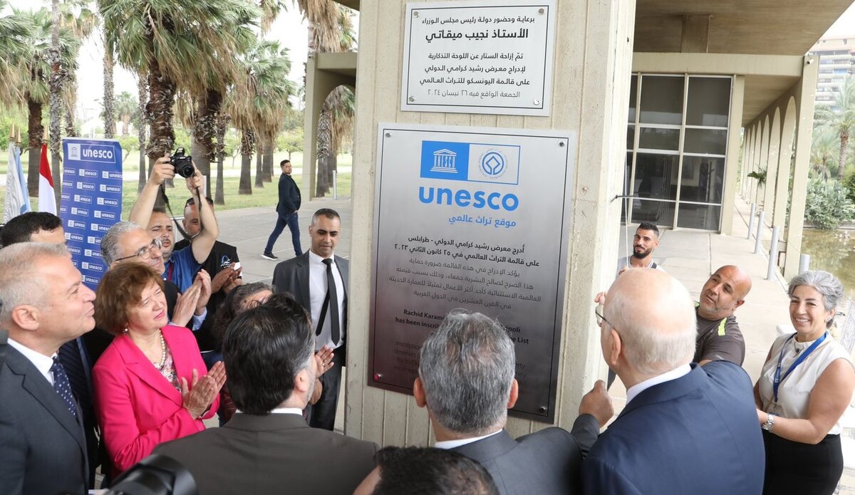 يُشَرِّفُني أن أتواجَد مَعَكُم اليوم في طَرابلُس في هذه المُناسَبَة الخاصّة لإزاحَةِ السّتارِ عَن لوحَة إِدراج مَعرَض رَشيد كَرامي الدَّوليّ على لائِحَة التُّراث العالمي لليونَسكو.