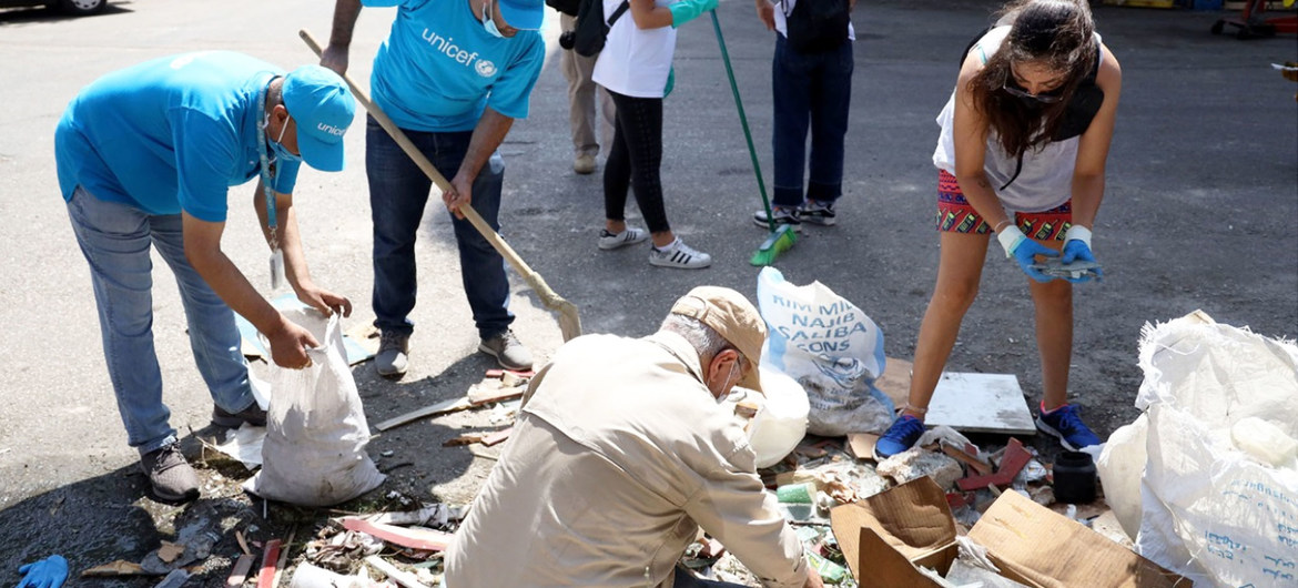 Wearing hats, masks and gloves, and carrying shovels, buckets and burlap bags, UN staff members from the various agencies across the country, began to put the staff unions’ #UN4Beirut initiative into action, to clean up glass, debris and rubble from the bomb-stricken streets and help vulnerable residents clear their damaged houses.